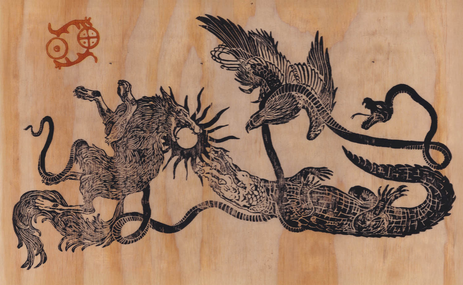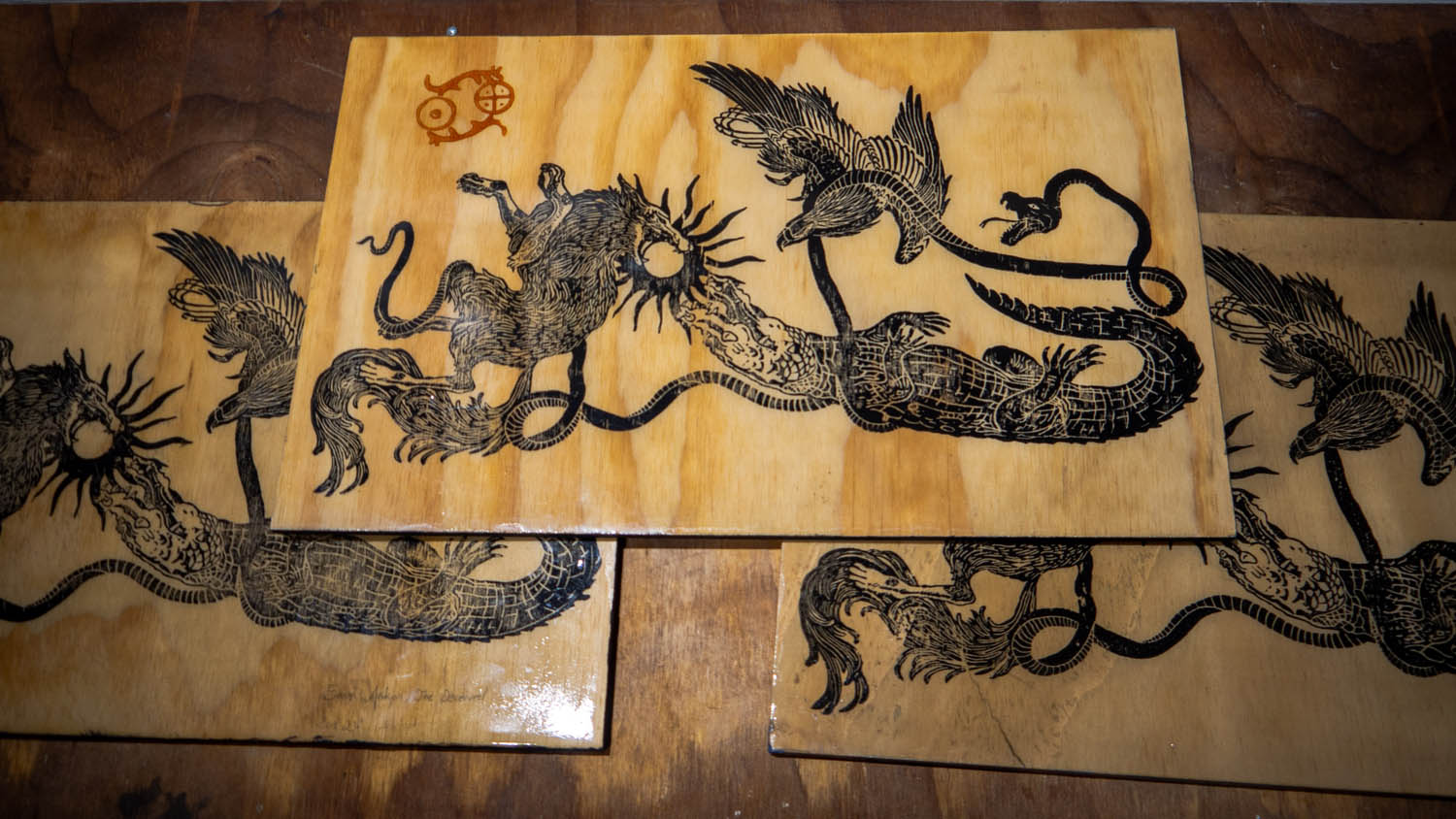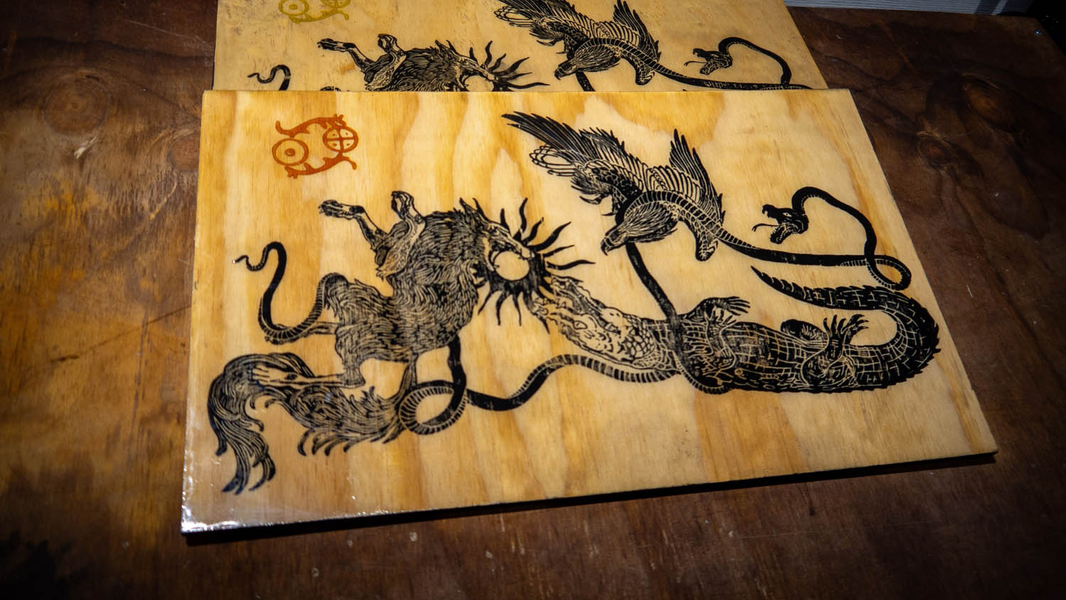 This artwork is a two layer print on birch plywood coated by epoxy resin.
