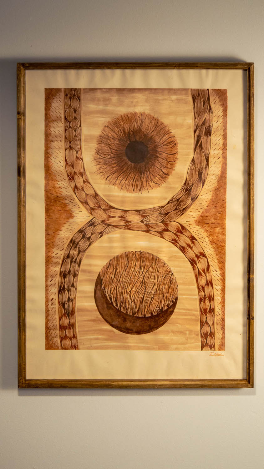 This piece marks my return to art full time after a long hiatus.During this process my style has shifted, too. I’ve traded my linocut tools for the fluid movement of paint and the grounding feeling of natural pigments. Working with brown oxide and acrylics has felt like an act of excavation. It didn’t feel like just a painting, it was a celebration of finding my voice again in the dark.
